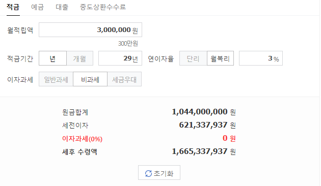 이율 3%, 월 복리 기준)
