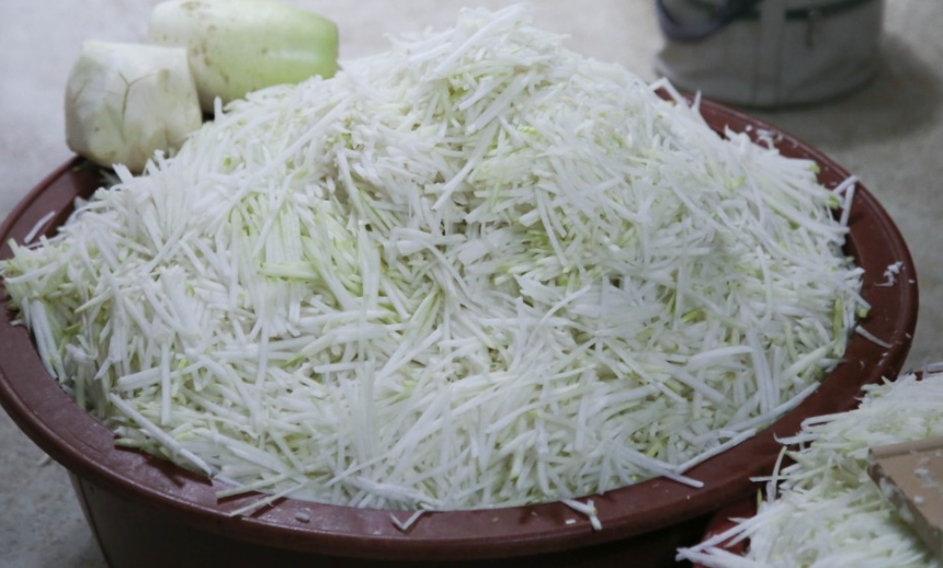 - 무는 깨끗이 씻고 채칼을 사용해 썰어 줍니다.