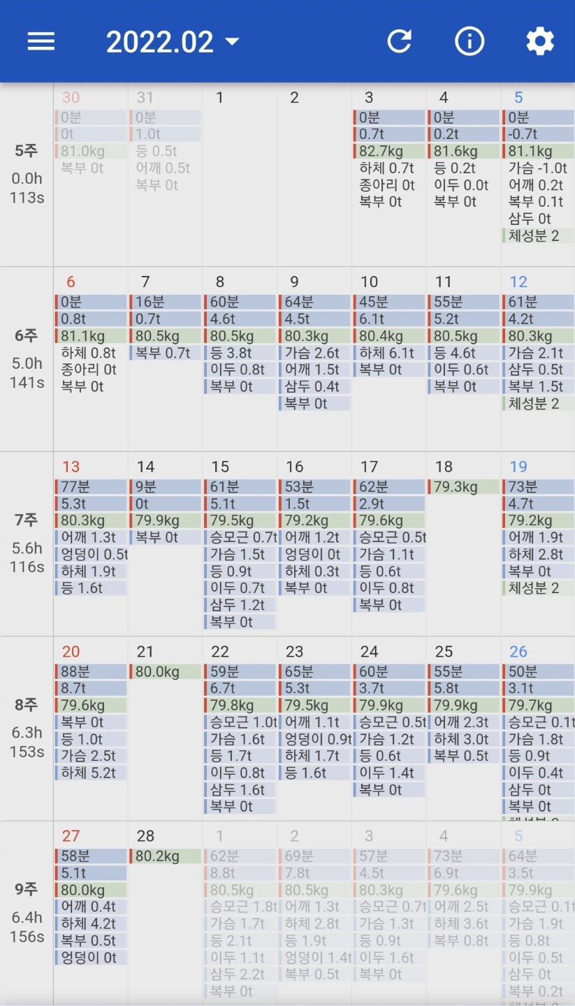 2월 중순이 되어서야 '바디 캘린더' 어플의 진정한 위력이 발휘됩니다.
