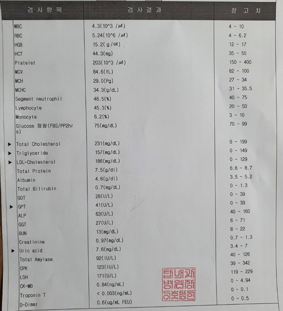 피검사도 다시 해보니 대부분의 수치가 정상으로 돌아왔습니다.