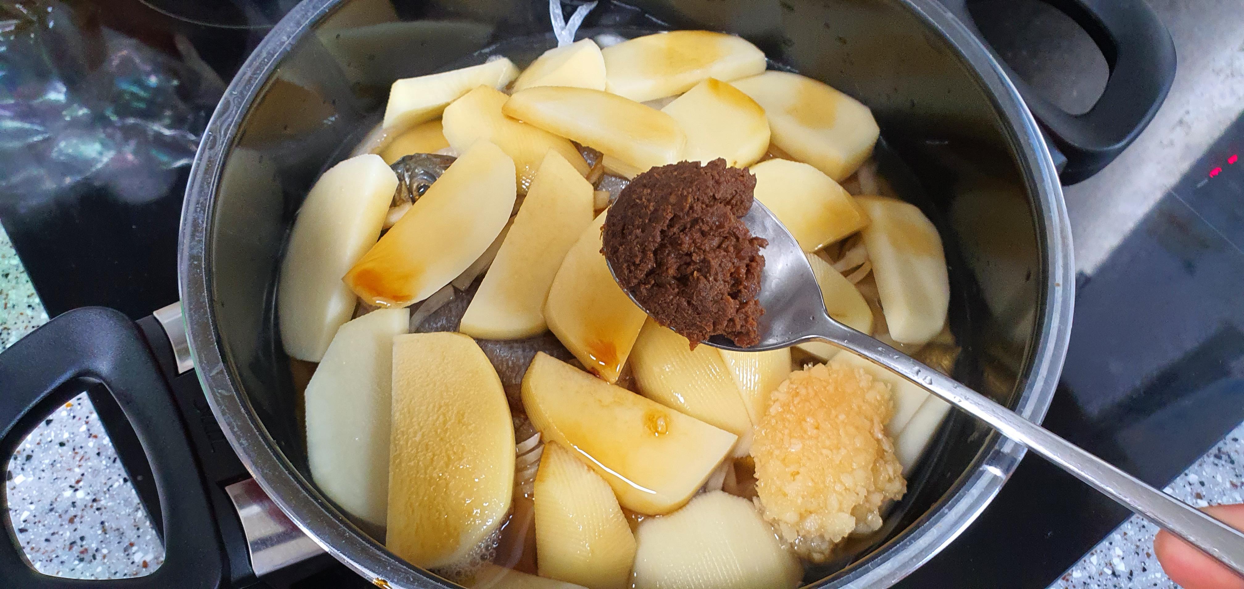 위의 양념 재료들을 모두 넣고 처음에는 센 불에 끓입니다. 보글보글 끓기 시작한다면 불을 중간으로 내리세요. 계속해서 강한 불에 끓이면 생선이 모두 으스러집니다.