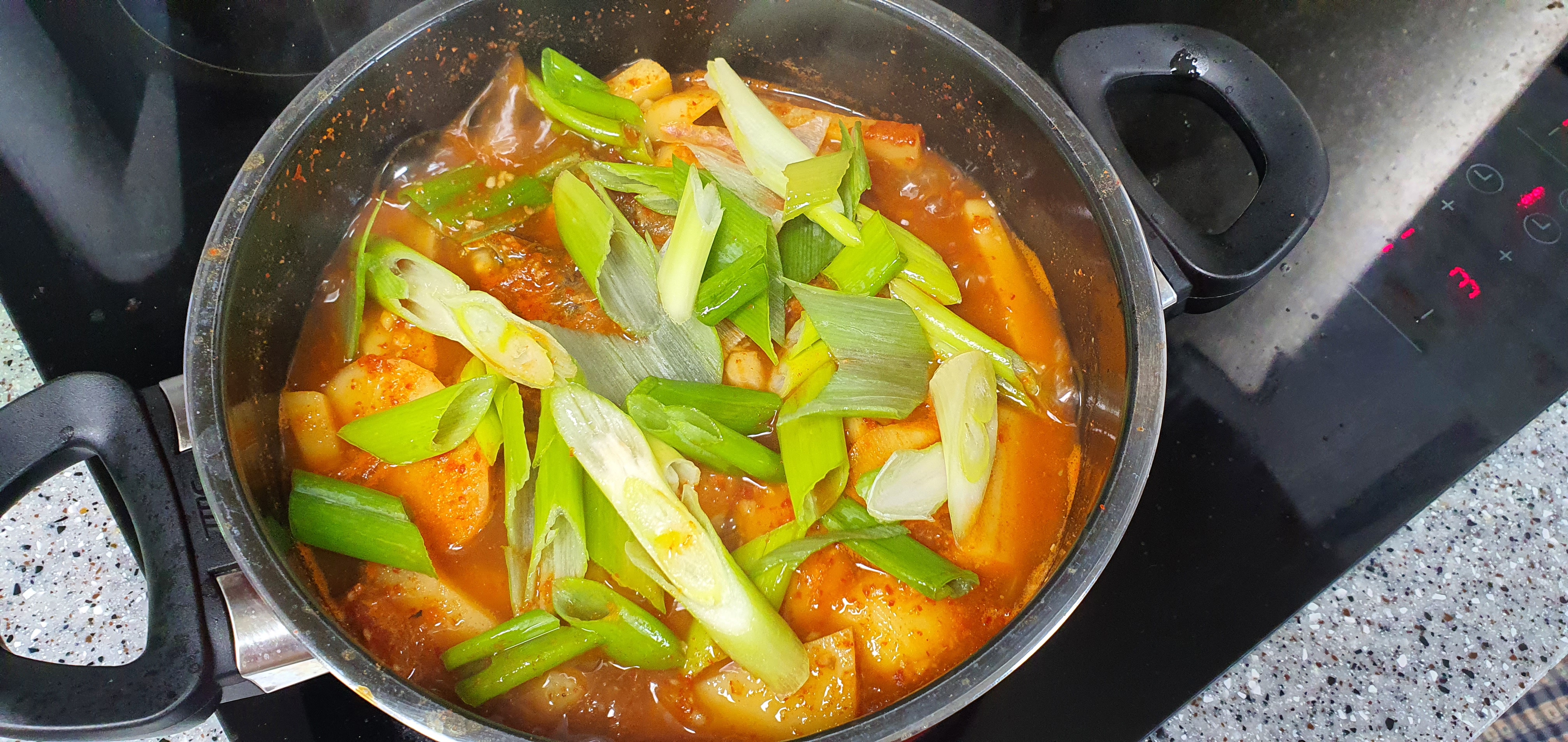 그리고 간을 잘 맞추었다면 대파를 넣고 조금 더 조립니다.
