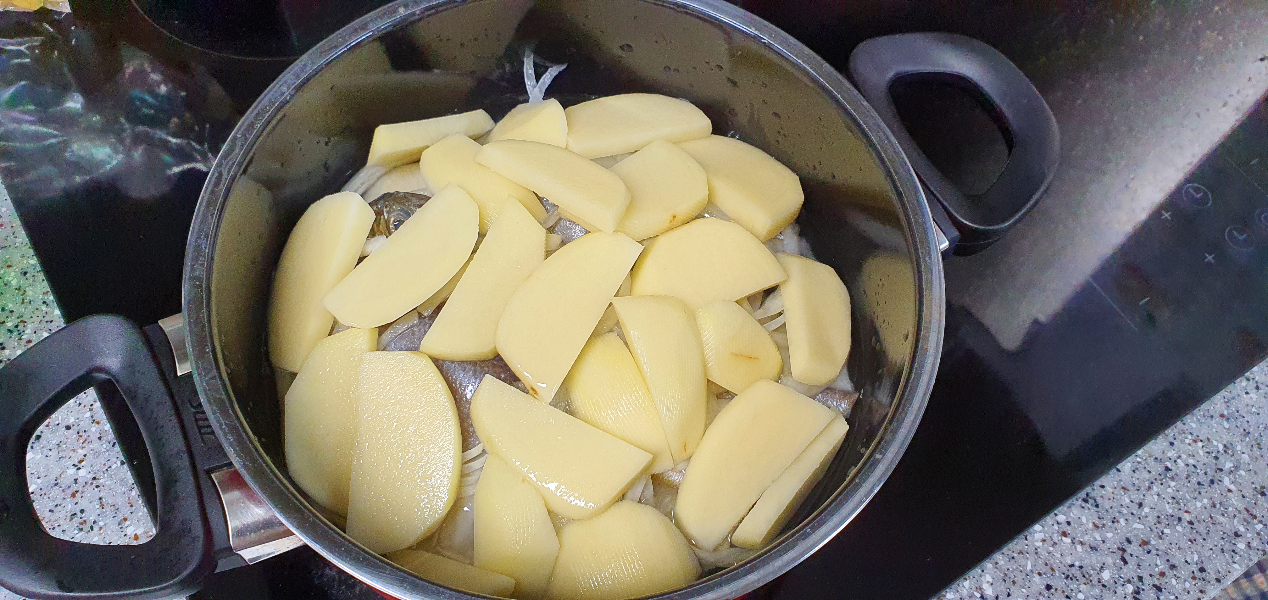 핵심 재료는 아니지만 개인적으로 좋아해 꼭 넣어야 하는 재료입니다. 양념이 잘 베어 들어간 부드러운 감자는 굴비 조림을 먹을 때 굴비만큼 끌리는 식재료입니다. 이것도 적당히 썰어 넣어주세요. 통으로 넣지만 않으시면 됩니다. 통으로 넣으면 생선이 모두 으스러질 때까지도 감자가 익지 않을 거예요.
