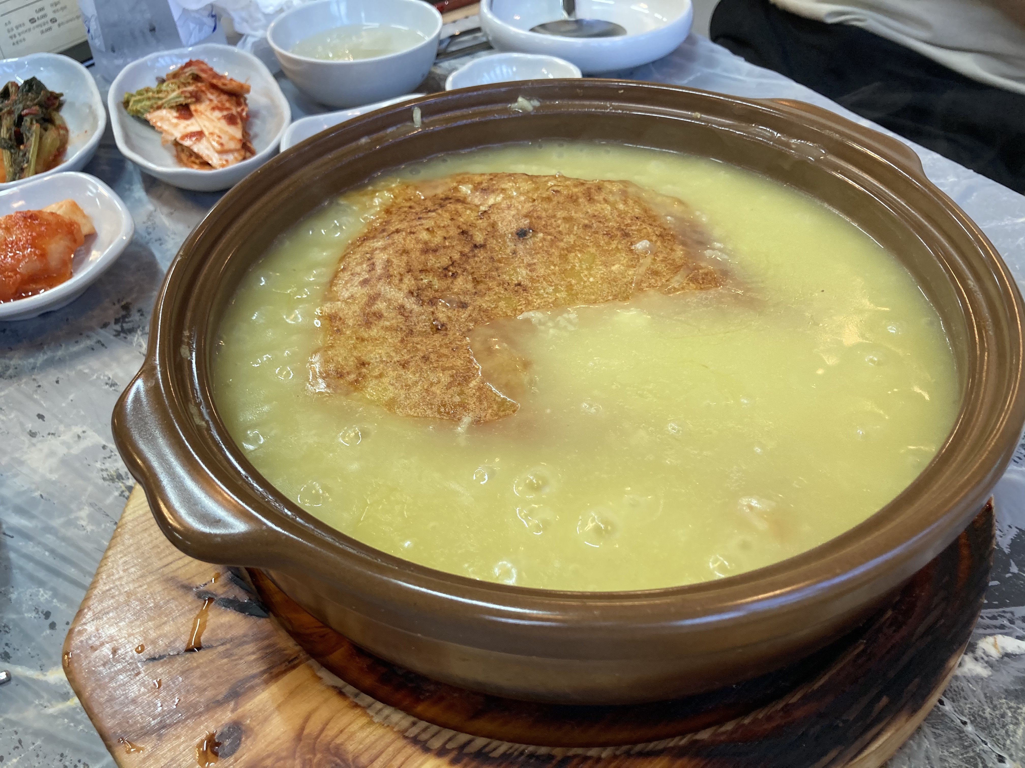 함께 나온 누룽지 죽의 간도 잘 맞았고 딱딱한 식감이 아닌 쫄깃한 느낌의 식감으로 먹기에 아주 좋았습니다. 특히 아이들이 잘 먹었습니다. 평소 저의 아이들은 편식을 하고 식사량이 적은 편(밥 반공기정도)인데 이날은 닭고기와 함께 누룽지 죽을 각자 4그릇씩 먹었습니다.
