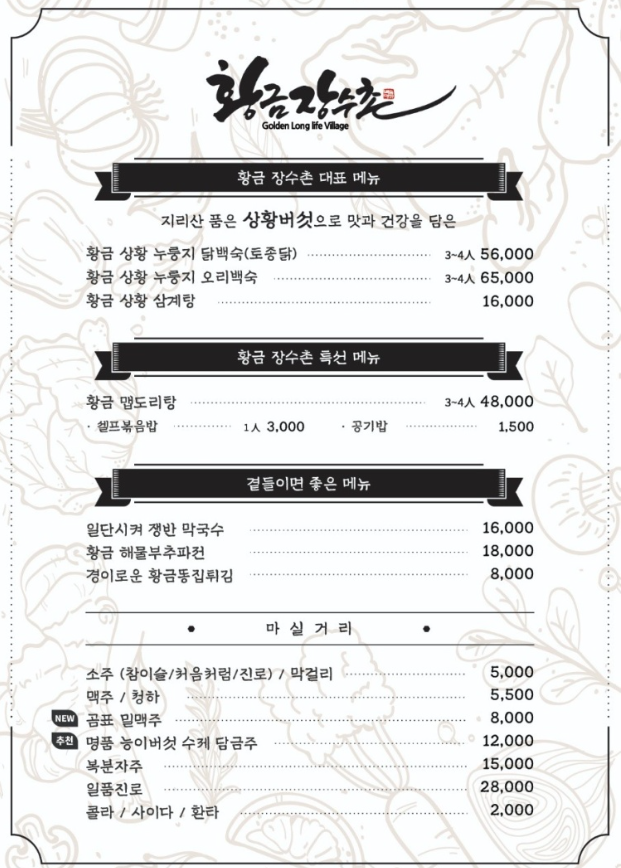 오산 맛집 황금 장수촌의 메뉴는 아래와 같습니다.