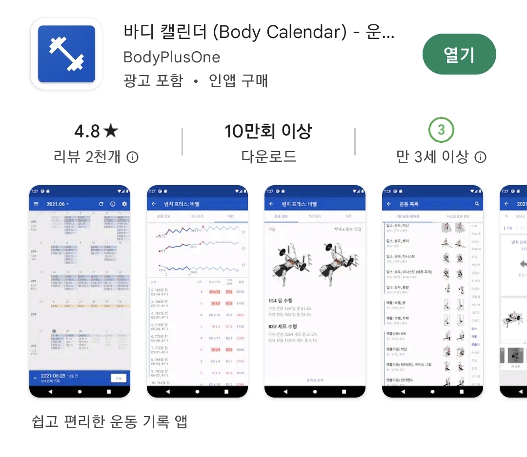 사진이 많고 설명이 길어 복잡하게 느껴지실 수 있으나 실제로 어플을 사용해보시면 매우 직관적이고 쉽게 조작이 가능하다는 것을 아실 수 있습니다. 앞으로 바디 캘린더를 통해 꾸준히 운동을 기록하신다면, 체계적으로 운동량을 늘려가며 빠르게 변화하는 몸을 확인하실 수 있을 겁니다. 그리고 어느 정도 꾸준히 기록을 하신다면 의지가 약해질 때마다 캘린더를 채우기 위해서라도 운동을 하려고 하는 자신을 발견하실 수 있습니다.