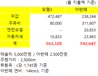모델3 지출액이 약 3만원정도 더 저렴한 것으로 나오지만